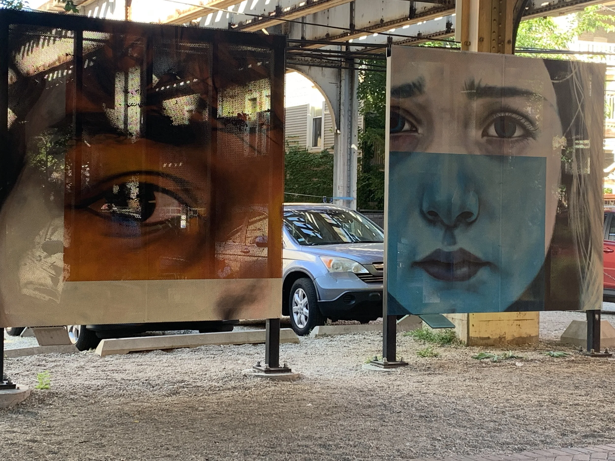 New art installation at the Lakeview Low-Line by artist POCHIS! Titled Low-Line Lisas of Lakeview, the exhibit includes three pieces across two art panels exploring friendship, coming of age, beauty, nostalgia and regret. Come check these out at Ashland (3411 N Ashland) and Paulina (3411 N Paulina) Plazas of the Low-Line!